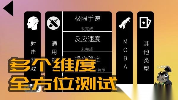 还有通常的反应速度、视觉记忆、输入速度手速等等项目,光用说的很难理解,只要你上手测试一定立马就明白了!测试完全部项目之后就会得出总评分,你可以分享朋友圈证明自己的游戏天赋!或者也可以把他们也拉过来试试哦~
