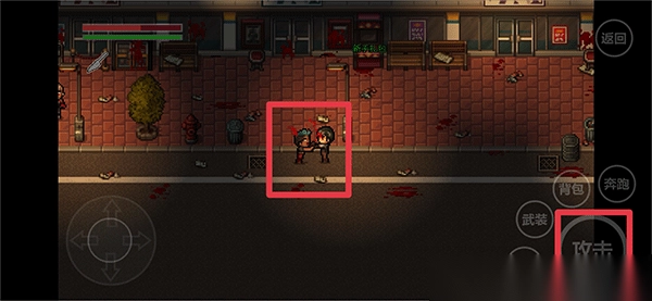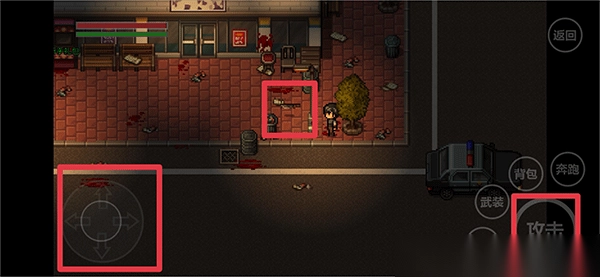 1、打开游戏,根据剧情的指示我们将去营救家人,下车后使用左边轮盘操作角色的移动,右边攻击击杀僵尸,然后操控角色移动至道具中获得小刀