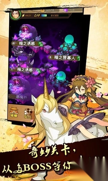 武将是本游戏的特色之一,不同拥有独特的技能和属性。每次征战您都可以携带上最多五名武将来消灭敌人,通过副本!武将之间还存在着属性克制关系!合理搭配您的队伍能让您更轻松的获胜。