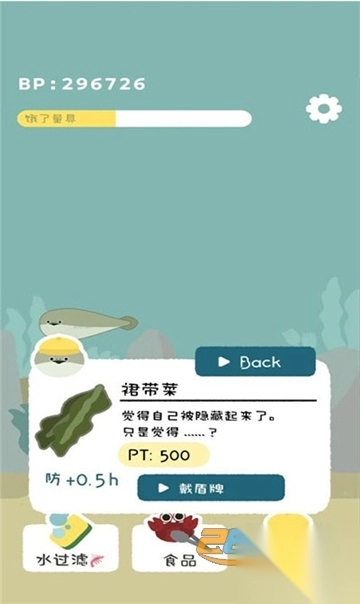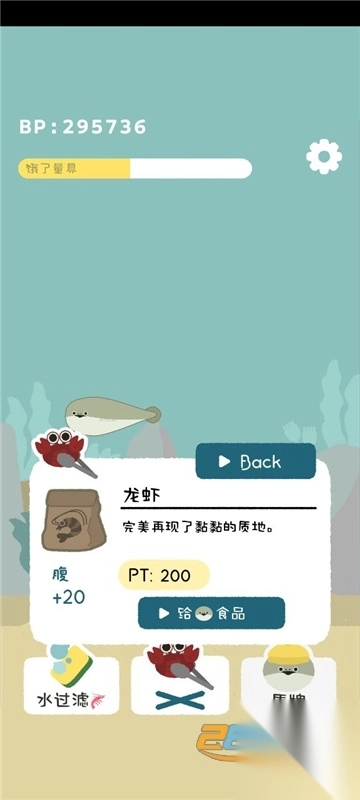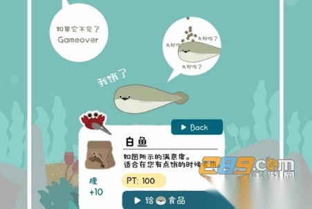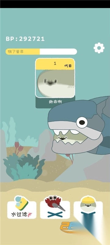 1、游戏一开始内,我们获得的是虚无鱼BasPi的鱼卵状态,这个时候只要净化脏水就好了,接下来就是耐心等待它孵化