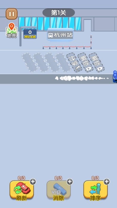 3、在看谁能通关初期,关卡较为简单,乘客数量较少,车辆颜色也相对单一,能够轻松完成匹配任务。