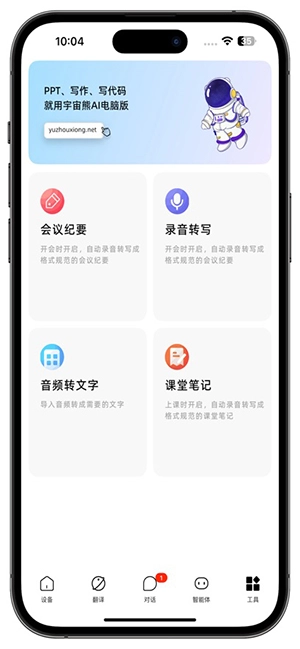宇宙熊AI作为一款多功能智能助手,凭借强大的功能组合,成为日常工作学习里不可或缺的得力伙伴。它集成众多实用功能,借助先进人工智能技术,致力于为用户提供高效且便捷的服务。