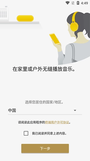 4、按照“Sony | Music Center”的画面说明连接Wi-Fi网络