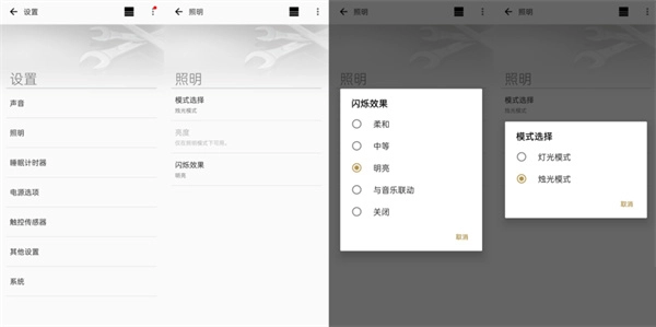 2、APP端可以直观的对音箱和灯光进行设置,在灯光的设置界面可以看到灯光的多种效果调节。