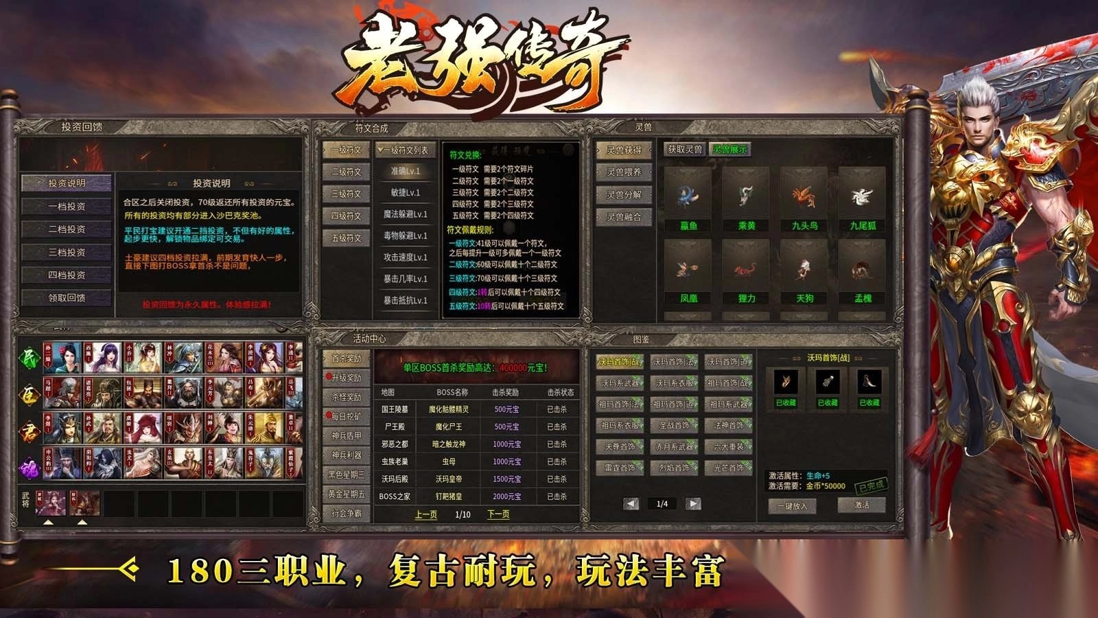 1. 立足经典传奇内容,再现熟悉的登录界面与游戏画面,给予玩家全新体验。