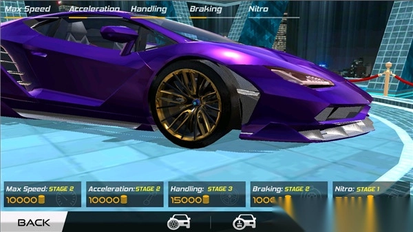 5、你甚至还能够对赛车的各个配件部分进行升级,以此来提高赛车的性能;