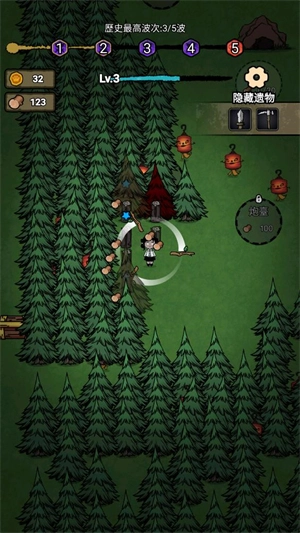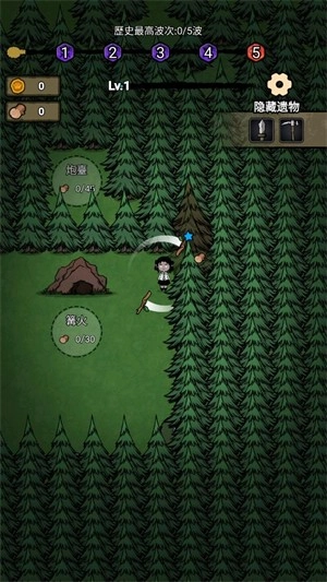 2、进入关卡后滑动屏幕控制角色的移动,靠近树木会自动攻击来获得木材和经验。