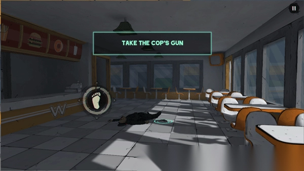 7. 地上横卧着一名已然阵亡的警察,我们能够捡起他的武器来武装自身。