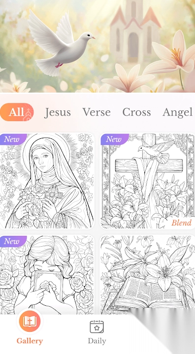 《给我的圣经上色》游戏,为用户开辟了一条在繁忙日常里亲近神之话语的独特路径。玩家借助为精心设计的图案涂抹缤纷色彩,得以探索并提升自身的灵性与创造力。无论你是在家中享受静谧时光,还是在旅途中寻觅片刻安宁,这款游戏都能化作心灵的栖息之所。每一个图案皆蕴藏着深邃的寓意,助力玩家于创作过程中寻得内心的平和,在色彩的天地里感知上帝的存在。