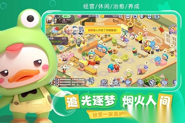 在梦想乐园这款手游里,你将模拟经营一家餐厅。亲自在游戏中制作美食与咖啡,热情招待顾客。随着经营规模不断扩大,还能招募各具特色、性格迥异的职员,他们每一个都是Q萌可爱的卡通形象。你可以精心装扮店铺、升级设备,解锁并学习各类全新的美食制作配方,最终把餐厅打造成知名品牌!梦想乐园官方正版中,不仅有众多主线任务、探索任务,让你倾听客人们的心声,还有社交系统,助你结识更多经营店铺的小伙伴!