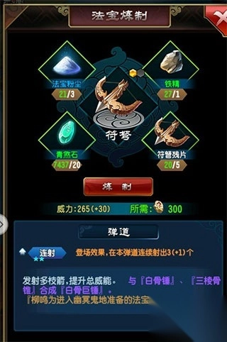 法宝需要先升级再炼制。