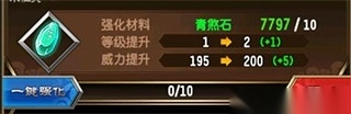 强化方式有两种,一是点击右侧,通过使用道具一级一级逐步升级;二是点击左侧,使用道具或仙玉,可一次性升至满级。