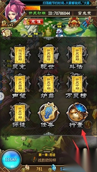 领取后可以点击右下角『菜单』打开『行囊』