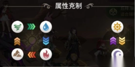 2、属性间的基础克制关系如下【风克水,水克火,火克地,地克风,光暗相互克制】。当处于被克制状态时,受克制的一方暴击率会降低10%,并且有50%的几率触发弱击,一旦触发,伤害效果会减少30%。反过来,克制方对被克制方的影响也是如此。