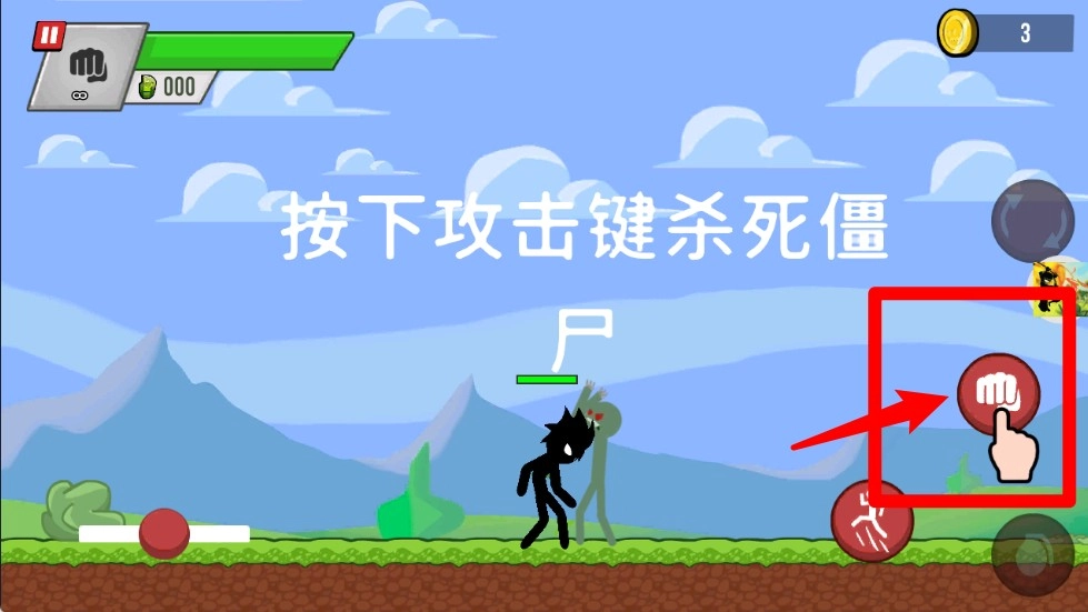 1. 移动操作:轻点左下方的圆形按钮,即可控制火柴人的前进与后退方向。