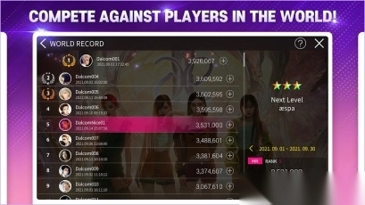 3、玩法丰富,包含PK和闯关系统,还能查看歌曲的世界排名。