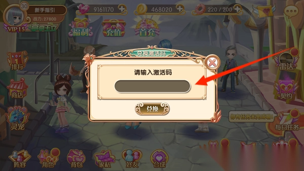 1、点击头像,激活码即可打开激活码界面,将获得的激活码依次输入即可兑换相应奖励。