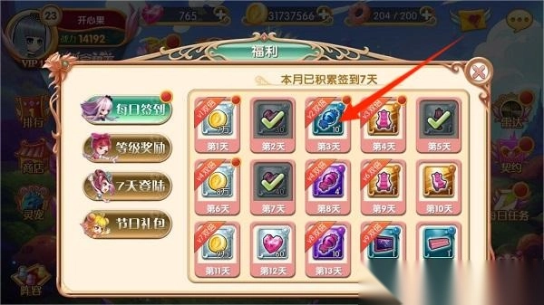 2、打开福利界面,点击相应天数,即可获得每日签到奖励哦~记得每天登陆领取。