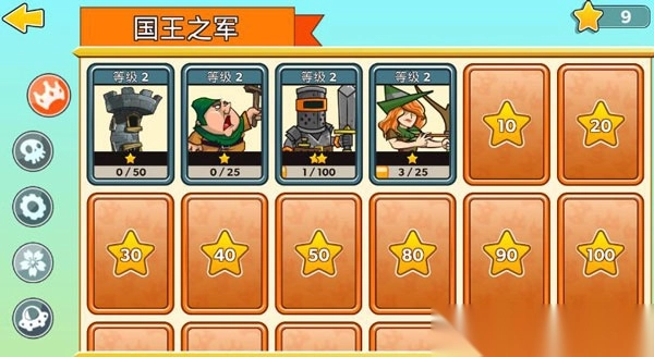 注意:兵种的数量也会随着星星的增加、关卡的推进会不断的解锁。
