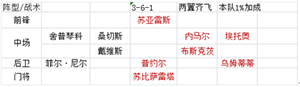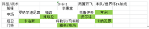 在防守端,采用3后卫防守体系,并搭配2个后腰提供支援,防守重点集中在中路,如此一来,当对方集中力量进攻中路时,想要突破渗透成功颇具难度。不过,由于两个边前卫在战术布置上侧重于进攻,防守投入相对较少,因此球队会比较忌惮对手从边路突破。而在进攻方面,会有4名中场球员积极参与,通过边路与中路的相互协作、彼此支援,能够切实有效地提升进攻效率。