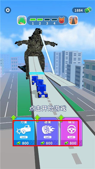 4、也可以使用金币来提升汽车的力量、速度等达到更好的游戏效果