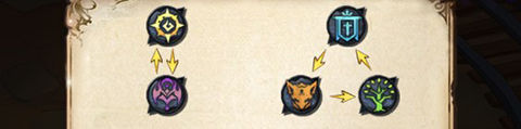 3、英雄阵营间存在克制关系,天神与恶魔彼此克制,森林、部落、联盟亦相互克制。
