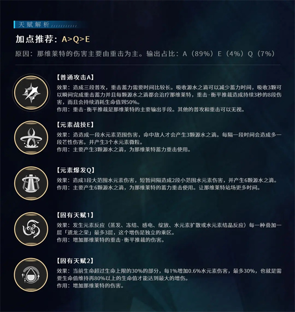 作用:主要产生6颗源水之滴,为那维莱特的蓄力重击使用。让那维莱特站场更多时间。