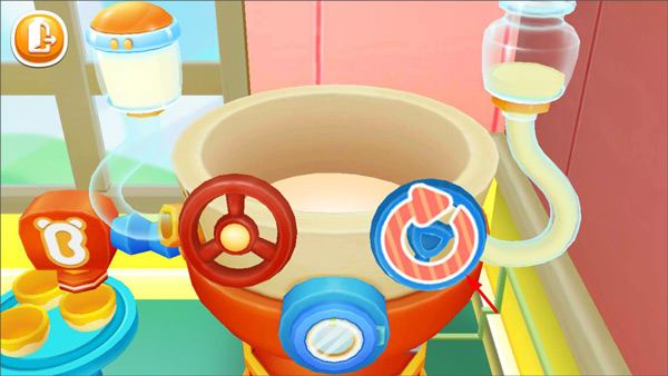 1、打开雪糕工厂游戏,玩家进入游戏模式,首先需要搅拌底料,通过点击旋转阀门来释放奶油;