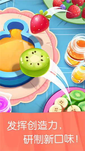 2、底料搅拌好之后,通过机器放到冰箱,玩家需要给雪糕添加各种果酱开启搅拌;
