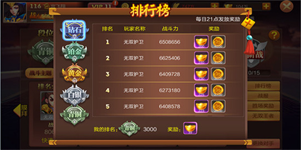 每日21时会根据当前所在段位及所处排名发放丰厚奖励,奖励将自动发送到邮箱中。在排行榜中可查看不同段位的排名奖励。