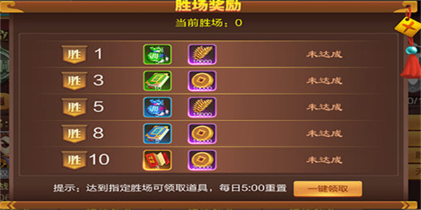 每日胜利指定场数之后,可在胜场奖励中领取对应奖励。每日5时将重置胜场奖励状态。