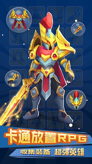 1、巧妙融合卡通角色的放置与战斗,借助装备收集获取实力超强的英雄。