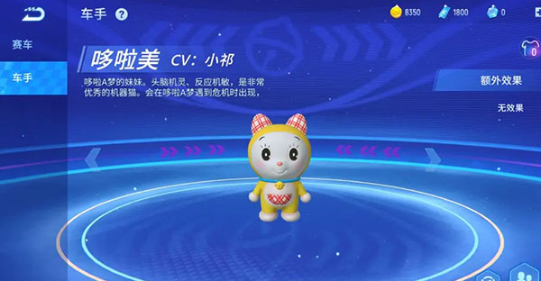 大雄在游戏中是我们的默认拥有的角色,在玩家创建角色后大雄会一直陪伴大家度过新手阶段,直到玩家解锁了其他角色,当然如果大家非常喜欢可爱的大雄,也可以一直选择他作为我们的出战车手进行使用哦!