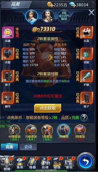 3、装备战力:人物【角色】面板中所有8个部位的装备基础战力的总和达到职介要求