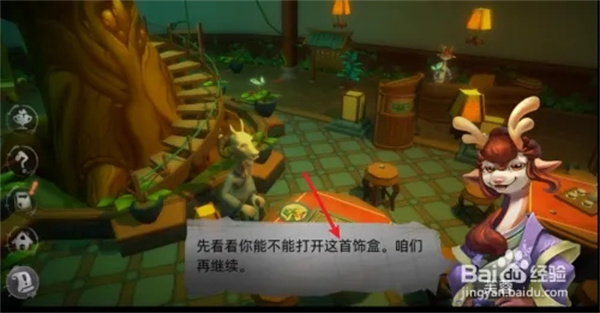 3.根据山羊先生的提示打开首饰盒,根据指引点击右上方的图标;