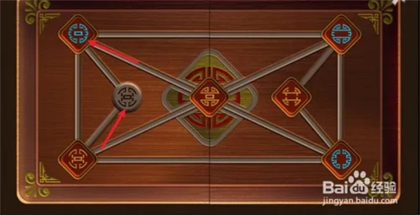 4. 我们返回大厅,从椅子和凳子上获取到两枚棋子,接着依据图谱所示,把三枚棋子在棋盘上摆放成相应的样子。