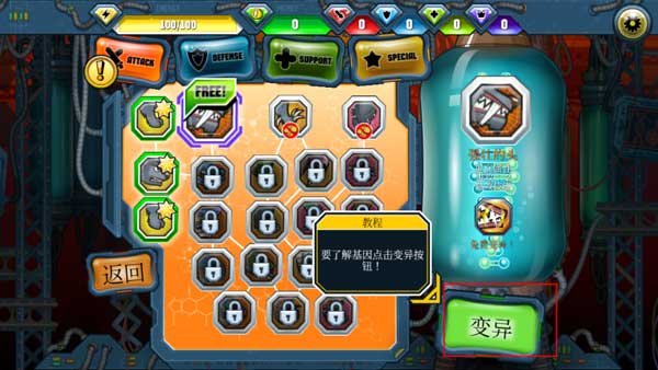 5、获得新的基因之后可以到实验室里点击基因按钮,这些基因按钮能够进行变异。