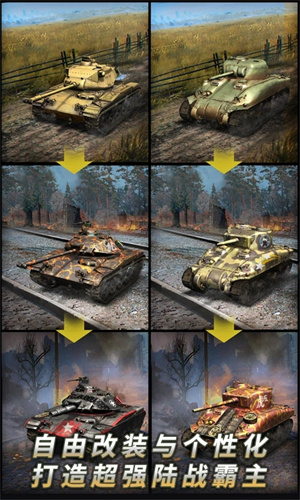 依托前沿渲染技术,运用全新Unity3D真实物理引擎精心打造,逼真复刻二战经典史诗级坦克,实现高度接近的数值还原!设有四大特色类型:轻型坦克、中型坦克、重型坦克以及反坦克炮。它们属性各异,各有专长且相互制衡。囊括德国虎式、苏联T - 34、美国M4谢尔曼、鼠式、黑豹等在历史上声名远扬的明星坦克战车。众多骁勇善战的军事将领,如“沙漠之狐”隆美尔、“铁血悍将”巴顿、“胜利的象征”朱可夫、“军魂”蒙哥马利等,都将由你指挥调度!