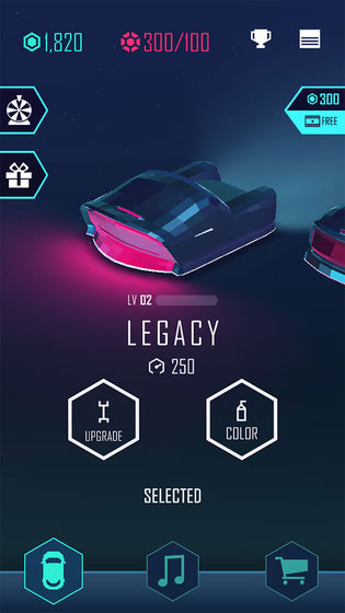 4.每局游戏都能获得金币和宝石,宝石可以用来复活和开始游戏,而金币则可以解锁新的车型和升级车辆属性,还可以改变车子的喷漆颜色。