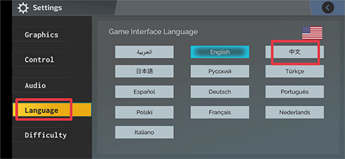 1、打开游戏后,点击设置,在language中可以切换为中文模式