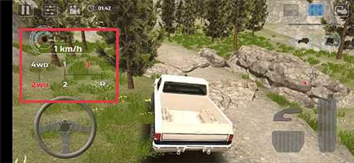 2、然后进入游戏,左下角的方向盘控制车辆的方向,右边控制车辆的前进和刹车