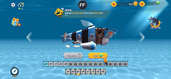 4、这里有15种隐藏的宝物等待着被发掘,还有超过75个任务亟待完成,同时还能为鲨鱼配备特殊的道具与物品。