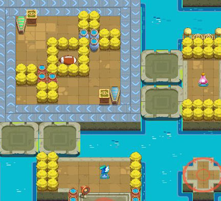 近4码的水域是什么概念呢,下图的水域约3码,1格表示1码,站在这个位置,可以直接突袭,猎手大概会翻滚到水域的中间那个格子,然后被强制跨到对面,差不多位移了4.5码