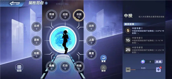 在属性加点体系里,球员任一属性的加点上限为25点,同时,单个角色的总属性加点不能超出100点,这就要求玩家更合理地规划属性点分配。每当球员的属性点提升至5点、15点或25点时,会触发相应的加点技能,增强该球员的实力,不过此效果仅针对当前球员。