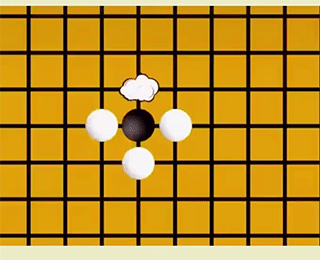 若在与直线紧邻的点上存在异色棋子,那么此处便没有气。一旦棋子失去全部的气,就无法在棋盘上留存。