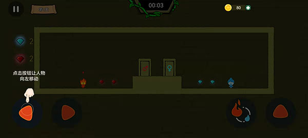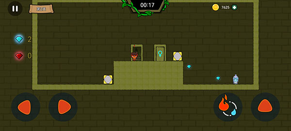 2、该游戏的操作方式是采用了房间键以及技能按钮,玩家们可以随时切换冰与火角色进行冒险。