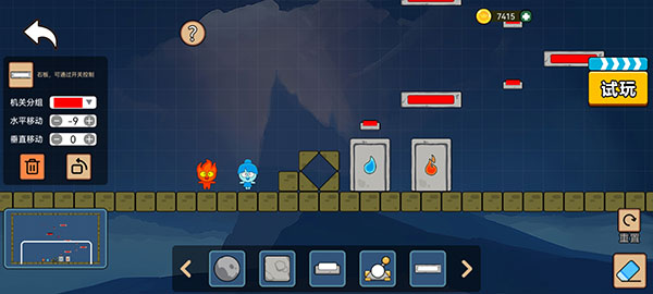 3、在游戏中,放置了很多种道具供大家使用,例如这块石头,玩家需要操控火娃娃将那块石头推下去,这样冰娃娃才能轻松跳跃上来。