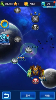 2、除了主要的宇宙飞船,还有2名助手能提升战斗力。你可以利用激光导弹、巨型弹药以及磁铁,来升级宇宙飞船的攻击强度与速度。