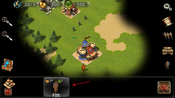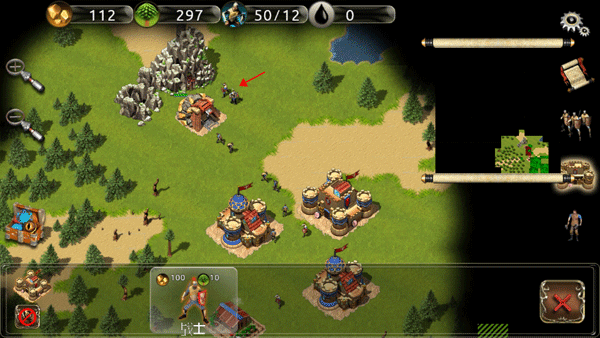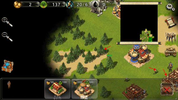 3、首先购买几名村民,指挥这些村民去砍树以及挖掘金矿,从而能够建造更多建筑并购买更多村民。