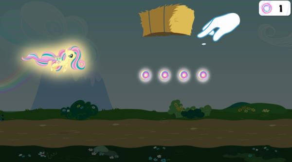 拾取彩虹能量后,可进入飞行状态,皆是玩家需要通过向上或向下滑动屏幕,拾取小马能量获得更多的得分
